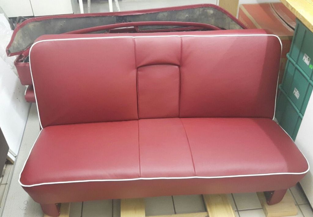Nunmehr werden die beiden Sitzbänke einer kompletten Restaurierung unterzogen (siehe Bilder unten), anschließend natürlich auch die Türverkleidungen und der Himmel... April 2016