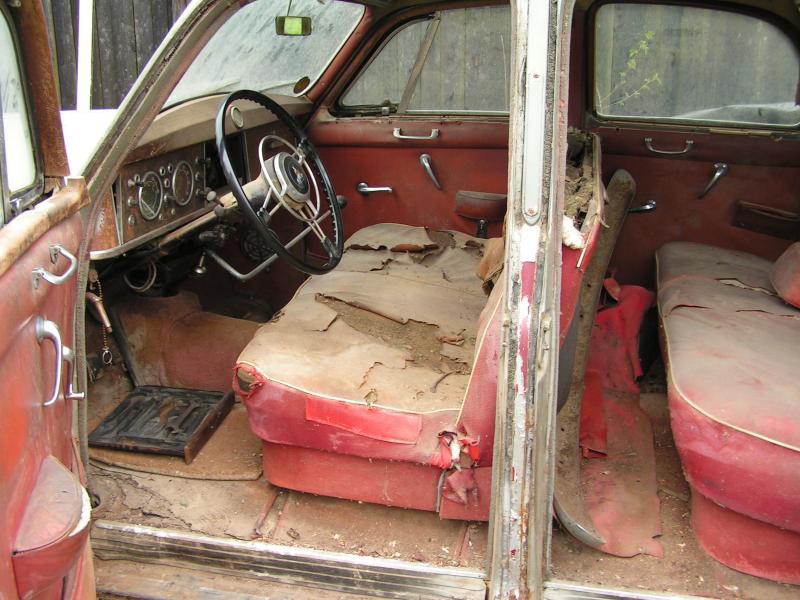 Ein Bild sagt mehr als 1000 Worte - das ist wohl ohne weiteres zutreffend, wenn man den Innenraum betrachtet. Die hintere Sitzbank sieht zwar nicht gar so bemitleidenswert aus wie die vordere, doch der - noch zu findende - Autopolsterer (Tapezierer) wird ganz sicher seine helle Freude daran haben... April 2014