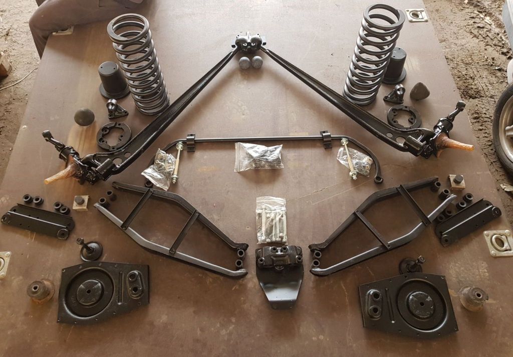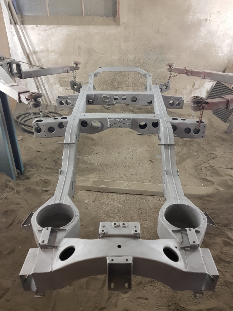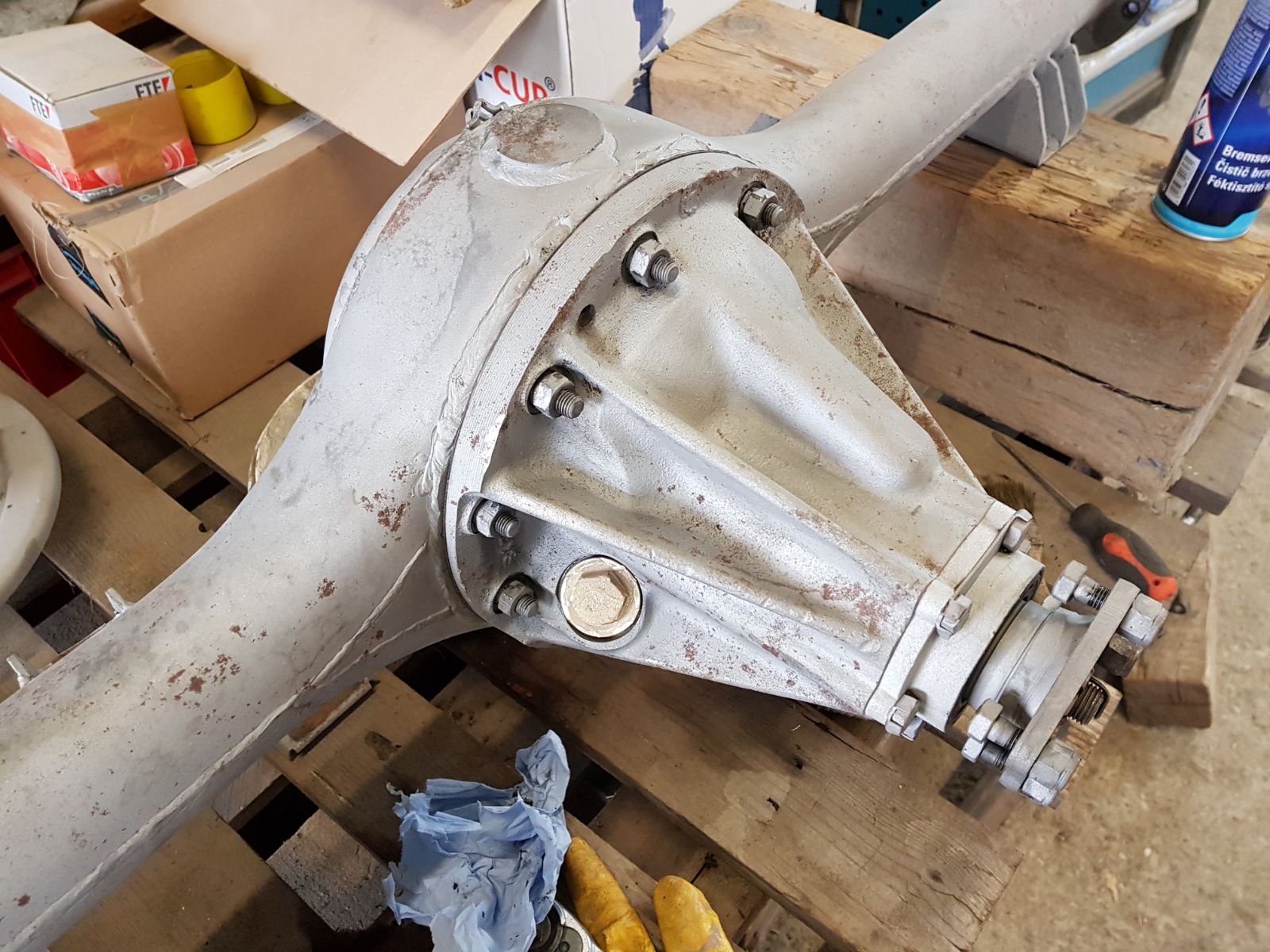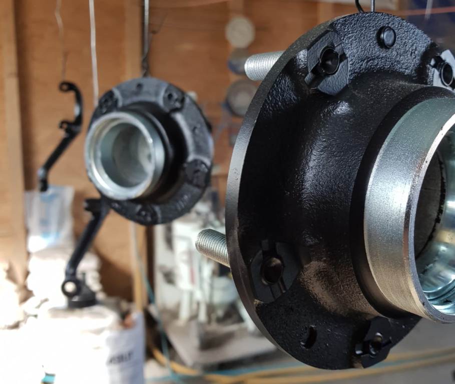 | Teile der Vorderachse werden gestrahlt, | ... lackiert und zum Zusammenbau vorbereitet ... |
