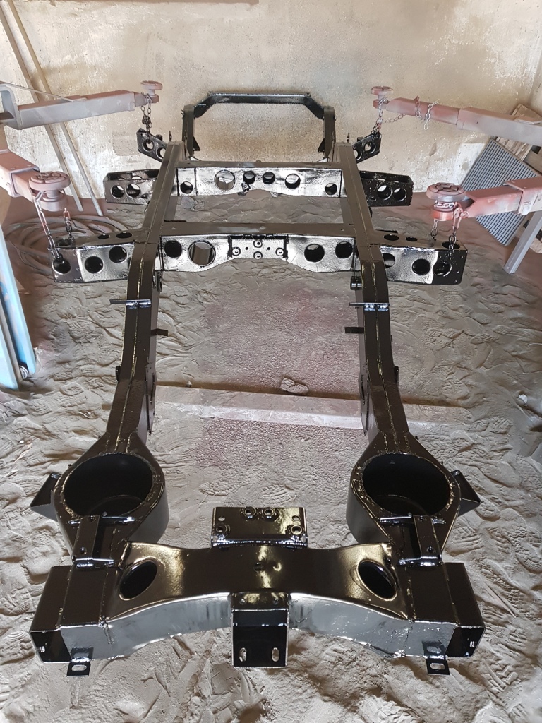 1) Rahmen nach dem ausbessern gestrahlt 2) Rahmen anschließend grundiert 3) abschließend lackiert |